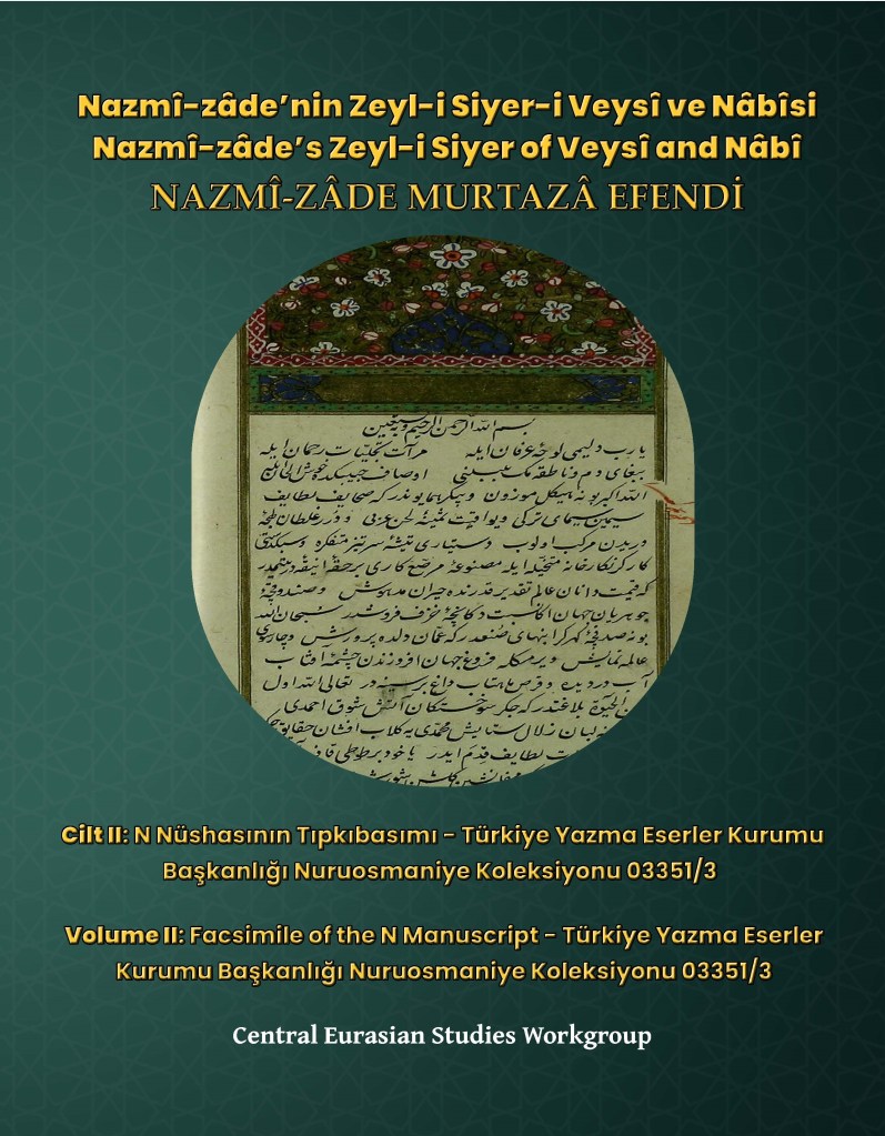 Facsimile of a manuscript of the Zeyl-i Siyer-i Veysî ve Nâbî, by the Ottoman Turkish scholar Nazmî-zâde Murtazâ. This manuscript is held by Türkiye Yazma Eserler Kurumu Başkanlığı, which catalogs it under “Nuruosmaniye Koleksiyonu 03351/3.” The manuscript, which Dr. Mehmet Büküm names “N manuscript” (“N Nüshası”), is one of the three manuscripts that he uses to make his critical edition (tenkitli metin) in Volume I (Cilt I).